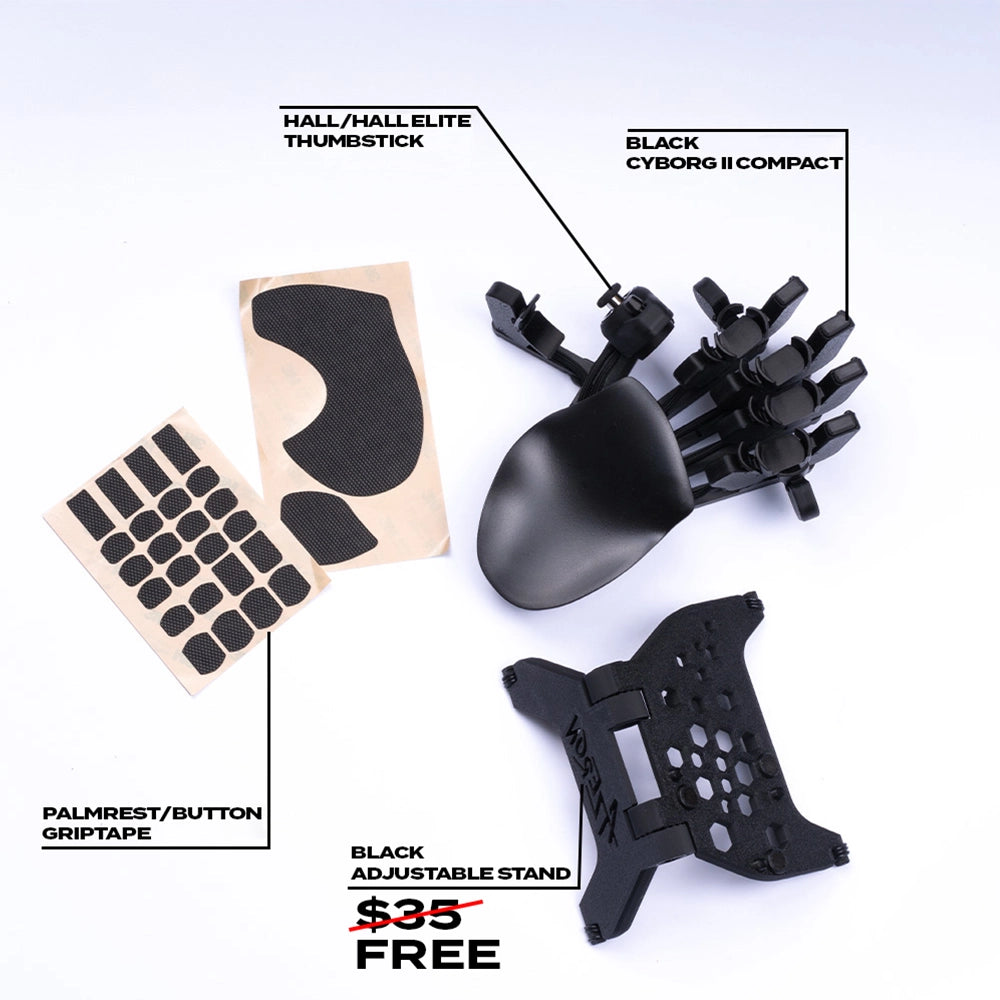 Black Cyborg II Compact For Left Handed + Grips + FREE Adjustable Stand