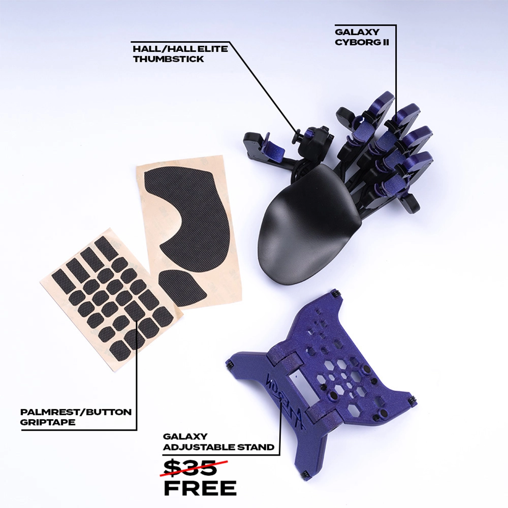 Galaxy Purple Cyborg II For Left Handed + Grips + FREE Adjustable Stand